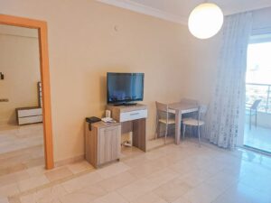 Lägenheten ligger på 11:e våningen och bjuder på en fantastisk utsikt över Taurusbergen. Kök och vardagsrum är i öppen planlösning, och i vardagsrummet finns en bäddsoffa som ger extra sovplatser. Sovrummet är rymligt och från balkongen har du fri sikt över det omgivande landskapet.
