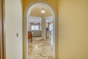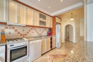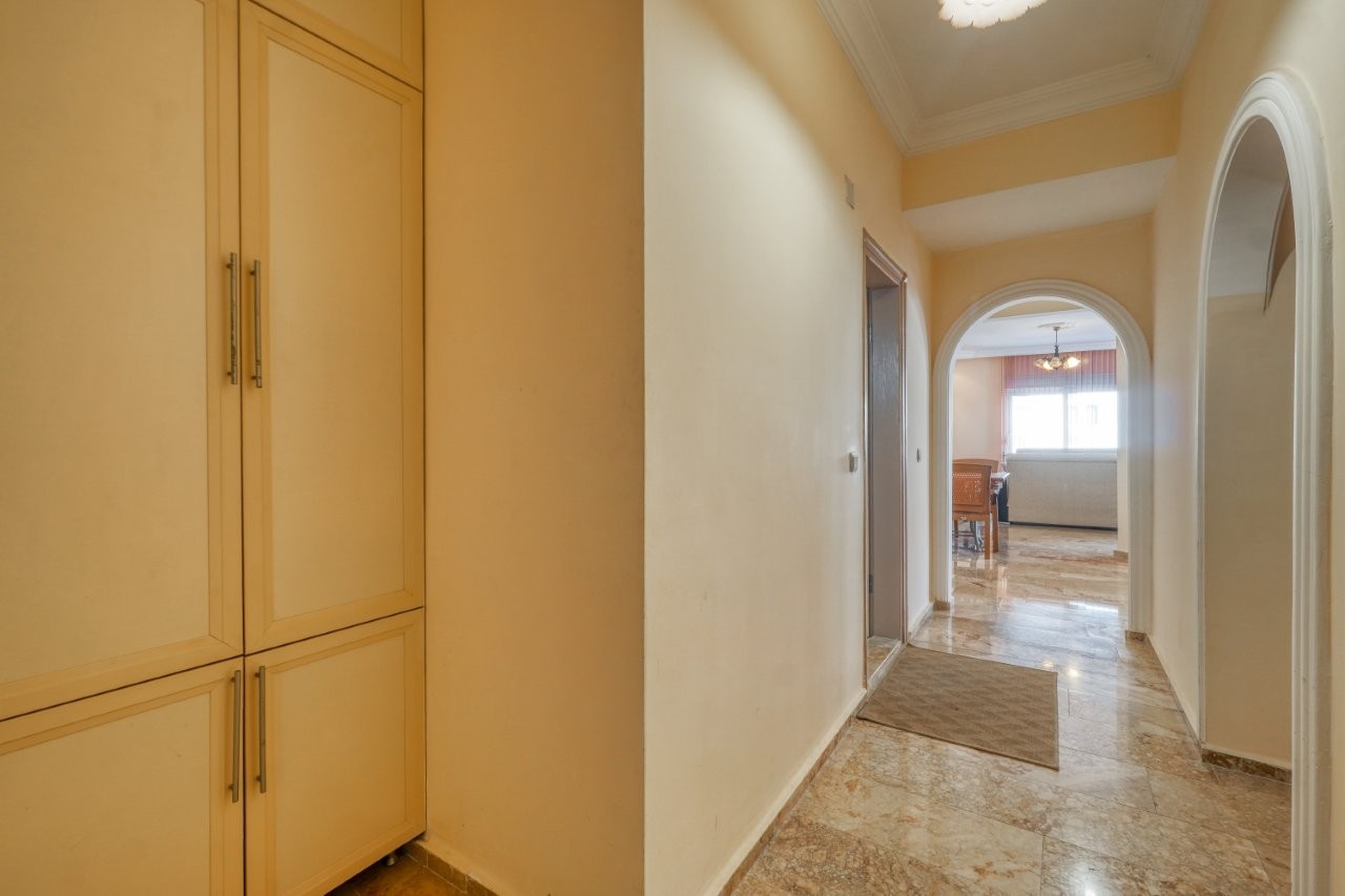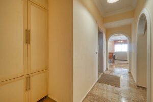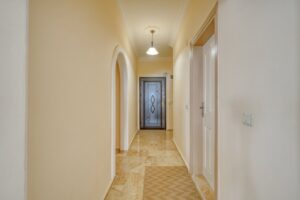 Lägenheten har genomgående fina marmorgolv i sovrum, vardagsrum och kök.